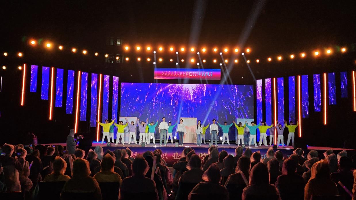在气势恢宏的节目《我们的新时代》中,我院学子以整齐划一的动作、饱满昂扬的精神状态,完美融入了这场时代赞歌。当聚光灯照亮舞台,他们用充满力量的舞姿,展现了新时代青年与祖国同行、与时代共进的坚定信念,赢得了现场阵阵掌声。