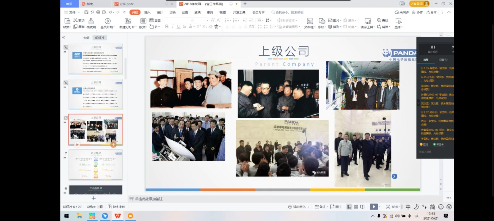 五家企业宣讲人分别为我院毕业生们带来了研发科技类、IT类、服务类、营销类、智造类、供应链类、管理类等多个类型的实习岗位,为毕业生们减轻了当代社会就业困难的压力,各位宣讲人通过在线PPT播放的形式从产品技术、职业平台、单位工作环境、工作内容、人才需求等多个层面让同学们及时掌握了各个用人单位招聘情况,其中郑州伊莱沙伯电子科技有限公司朱经理以云面对面这种特殊的方式向同学们叙述了该公司的招聘内容。