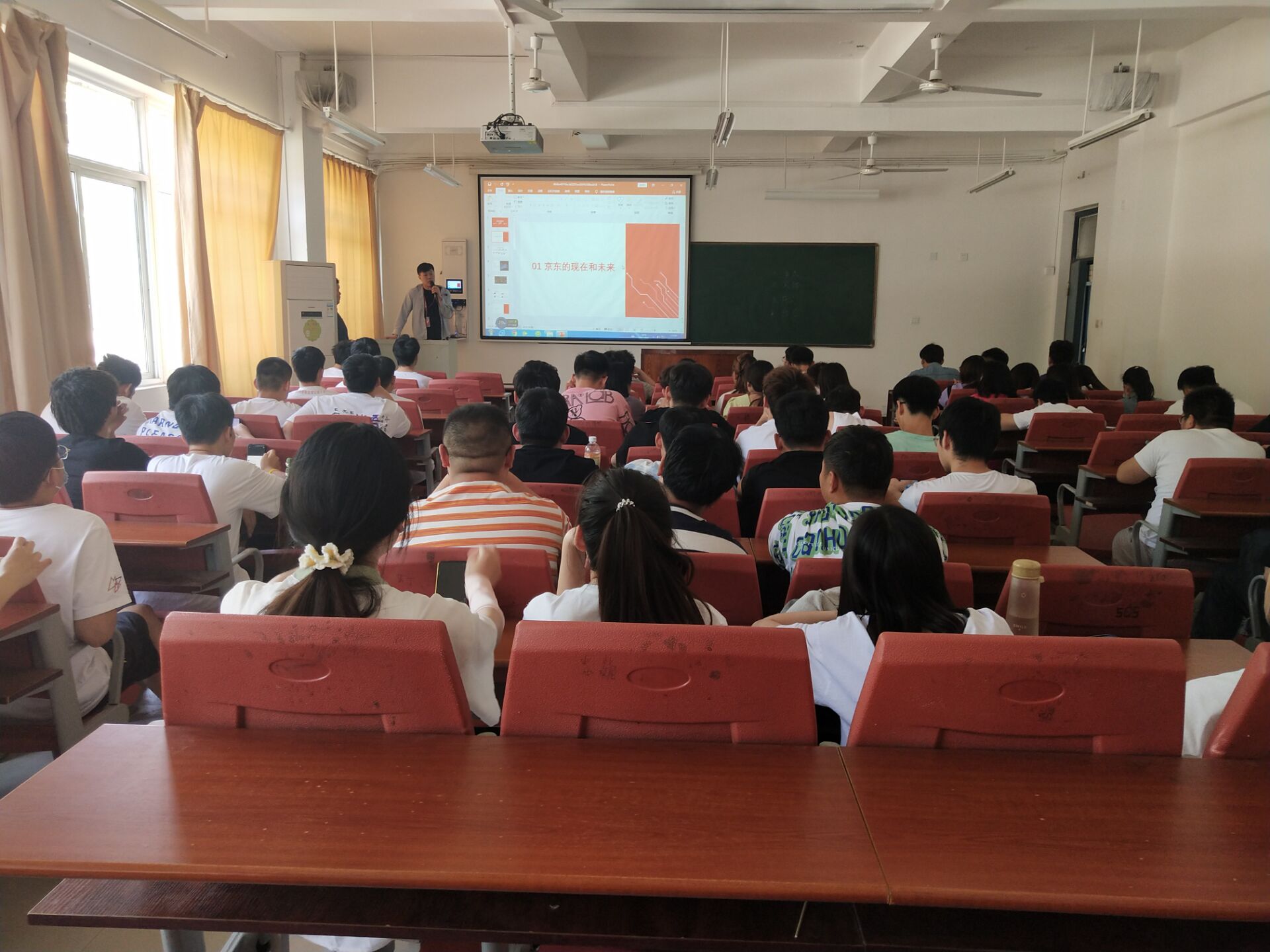 为给2022届毕业生提供良好的就业机会,帮助在校学生了解社会发展现状和就业形势,2021年5月27日下午,京东集团人力资源部门负责人王经理应邀于我校教学楼102为同学们开展招聘宣讲会,学生们积极报名,踊跃参加。