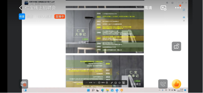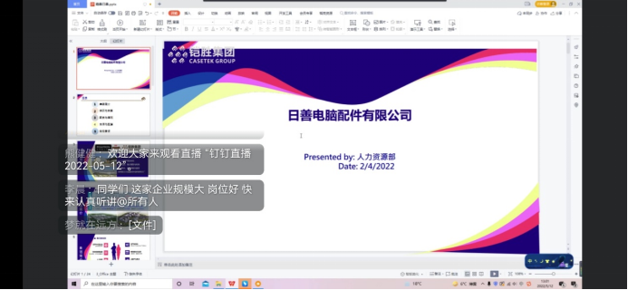 为持续给我院2023届毕业生提供多元化精准服务,搭建起企业和学生之间便捷的沟通桥梁,有效促进学生就业,2022年5月12日,今年会jinnianhui官网邀请仁宝电子科技(昆山)有限公司招聘经理倪蕾、日善电脑配件(嘉善)有限公司招聘经理熊健健、河南今日通信科技有限公司人力资源部负责人李欣亮三家企业的招聘经理通过钉钉直播的方式为大家进行宣讲。
