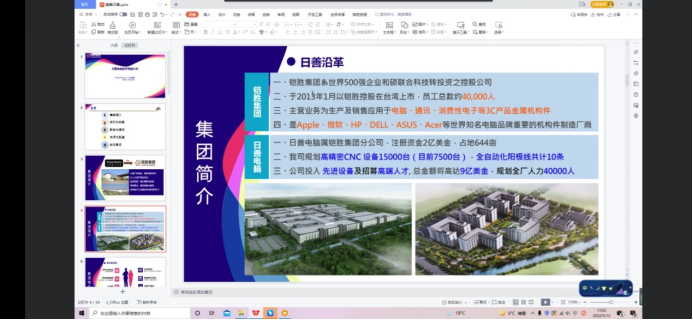 日善电脑配件(嘉善)有限公司,经营范围包括计算机、通信设备和其他电子设备及其精密零部件、汽车用精密电子零部件,精密模具,镁合金、铝合金精密模锻件,金属及非金属制品模具的设计、生产、销售及维修业务,并提供有关的技术服务;电子产品保护套的生产及销售;自有设备租赁;技术咨询及服务;以上产品及其相关零部件的批发、佣金代理及其进出口业务,并提供相关的配套业务。公司为员工创造了优越的工作条件,建立了完善的管理体制,同时产线拥有最先进的生产设备,并确保安全及人性化的生产,让所有员工均能“快乐工作”。