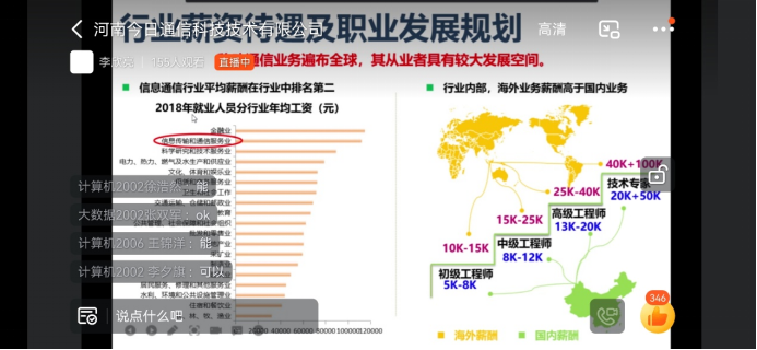 在三家企业招聘经理精彩宣讲的同时,同学们认真听讲,积极回应,就直播宣讲中不明白的问题提出疑问,企业招聘经理也为学生耐心解答,让我院学生对三家企业也有了较为详细的了解,空中宣讲会打破了传统时间和空间的限制,为学生顺利就业提供了一份强有力的保障。
