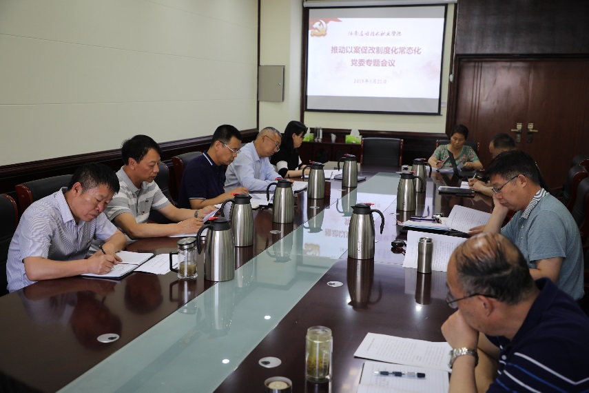 5月21日下午,学校党委召开了以案促改专题会议,学校党委委员、党办、监察处负责同志参加会议。会议由党委书记秦书君同志主持。