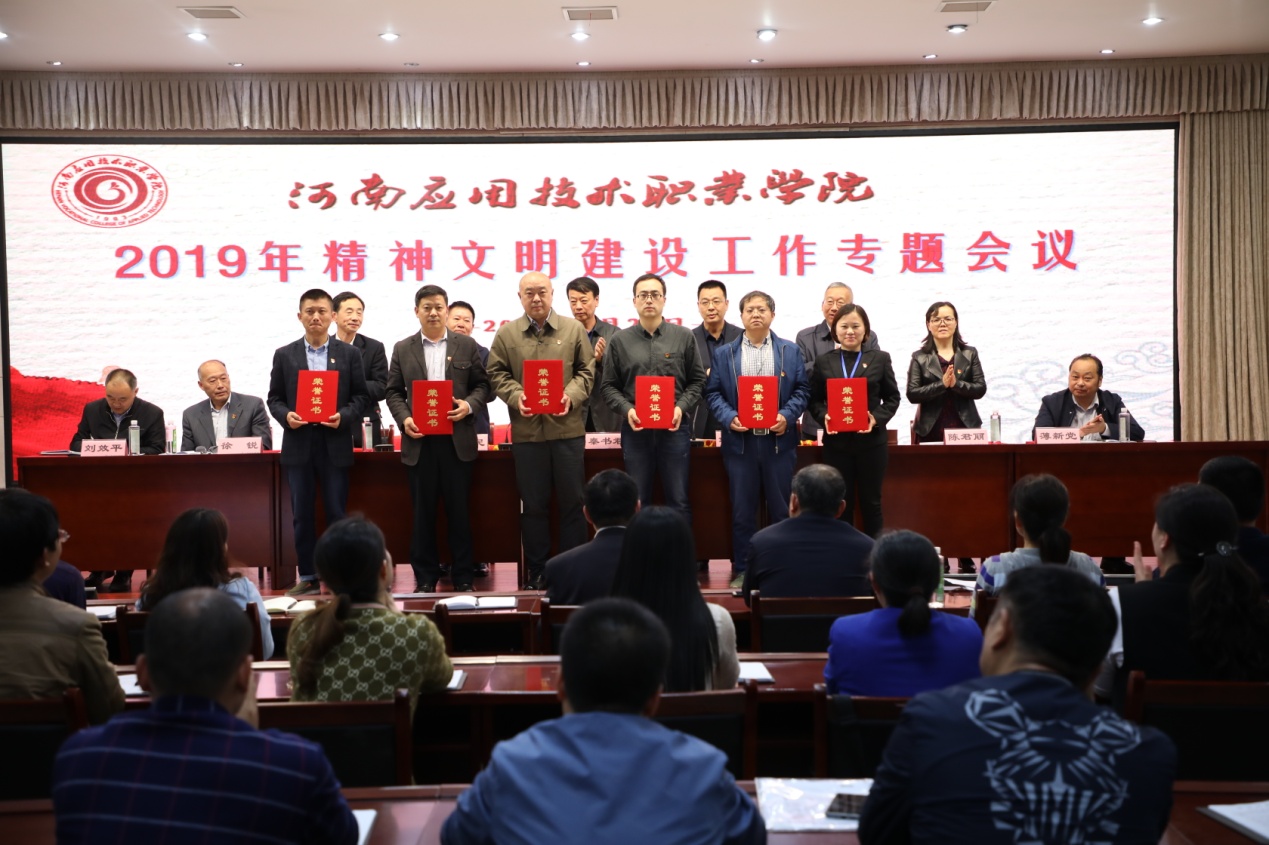 会上,副校长赵玉奇代表校党委宣读了《关于表彰2018年度“文明处室(院部)”、“文明教研室”、“文明食堂”、“文明职工”的决定》,2018年我校共表彰文明处室(院部)8个,文明教研室13个,文明食堂6个,文明职工36人。校领导为受表彰集体进行了颁奖。