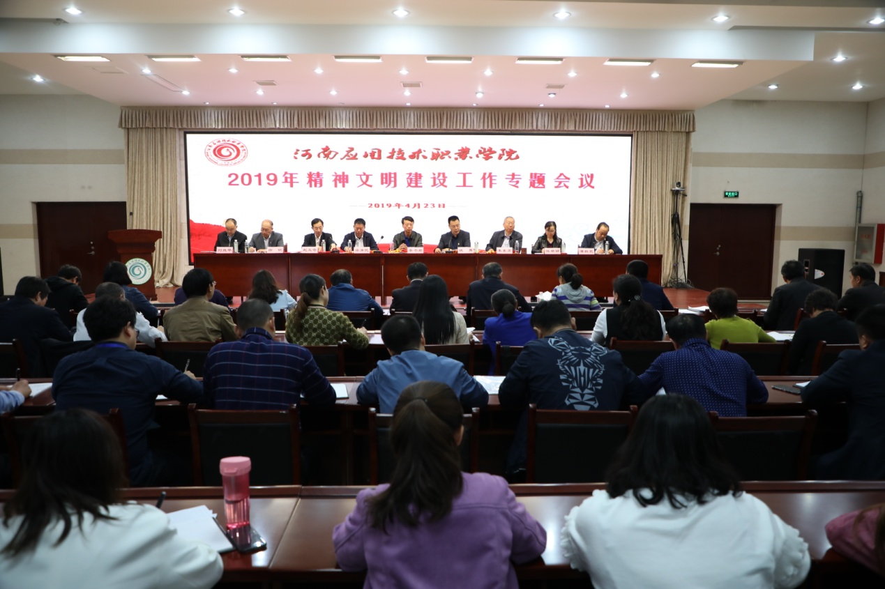 2019年4月23日下午,我校在实训中心二楼会议室召开东西校区2019年精神文明建设工作专题视频会议,总结回顾2018年学校精神文明建设工作,部署2019年精神文明建设主要任务,全体党委委员、各部门主要负责人及全体教职员工参加会议。